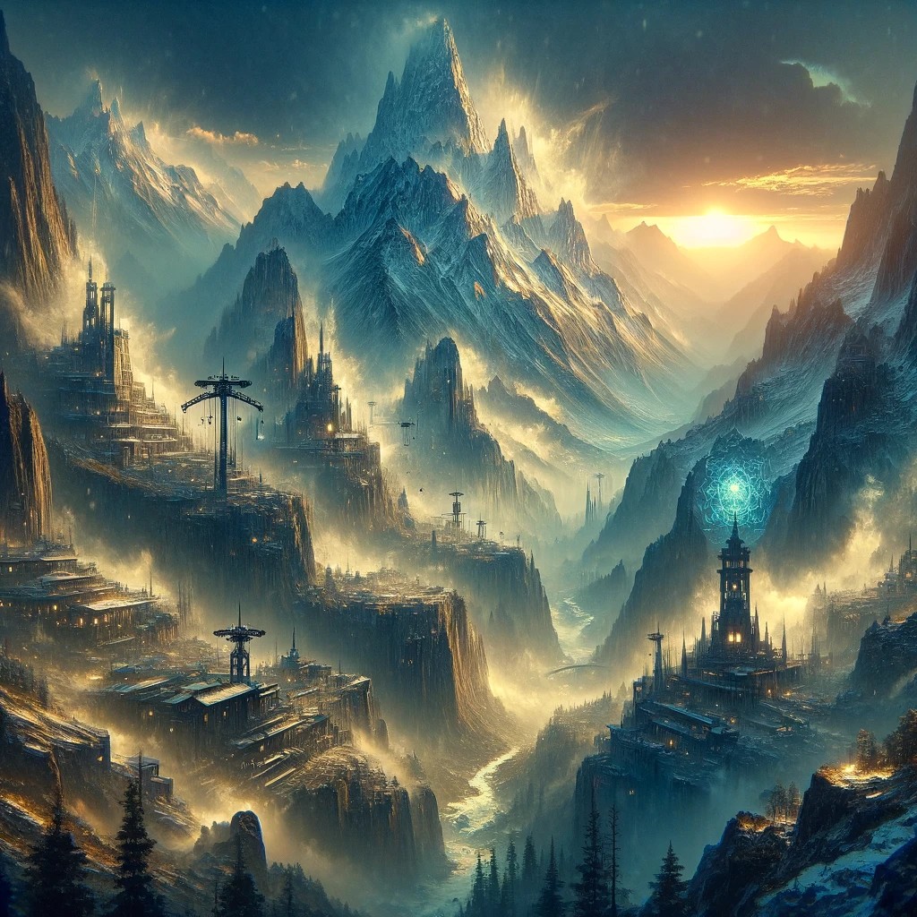 Les sommets majestueux des Montagnes Éternelles cachent des sanctuaires oubliés, où des moines sages méditent depuis des siècles, cultivant des pouvoirs mystiques. Ces montagnes servent de lieu d’épreuve pour ceux en quête de sagesse, les vents froids et les passages escarpés testant la détermination des aventuriers.