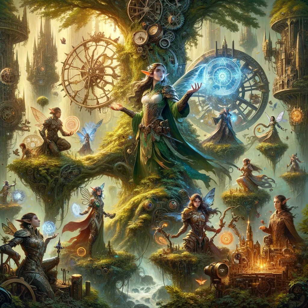 Les Elfes de L’Éternelle Clairière : Nichés au cœur de la Forêt des Énigmes, les Elfes de L’Éternelle Clairière vivent en harmonie avec la nature. Ils maîtrisent la magie des arbres et sont réputés pour leur sagesse. Leur cité elfique, construite dans les branches des arbres géants, est un havre de paix.