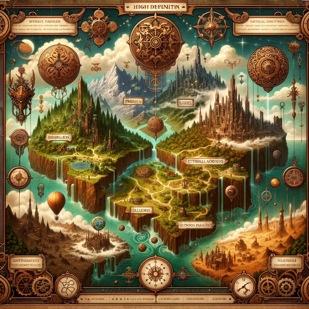 Dans les cieux d’Aldoria flottent les Îles Célestes, des masses de terre suspendues par la magie. Ces îles abritent des créatures aériennes, des jardins célestes et des ruines d’une civilisation ancienne. Le passage entre les Îles Célestes nécessite des connaissances en vol magique.