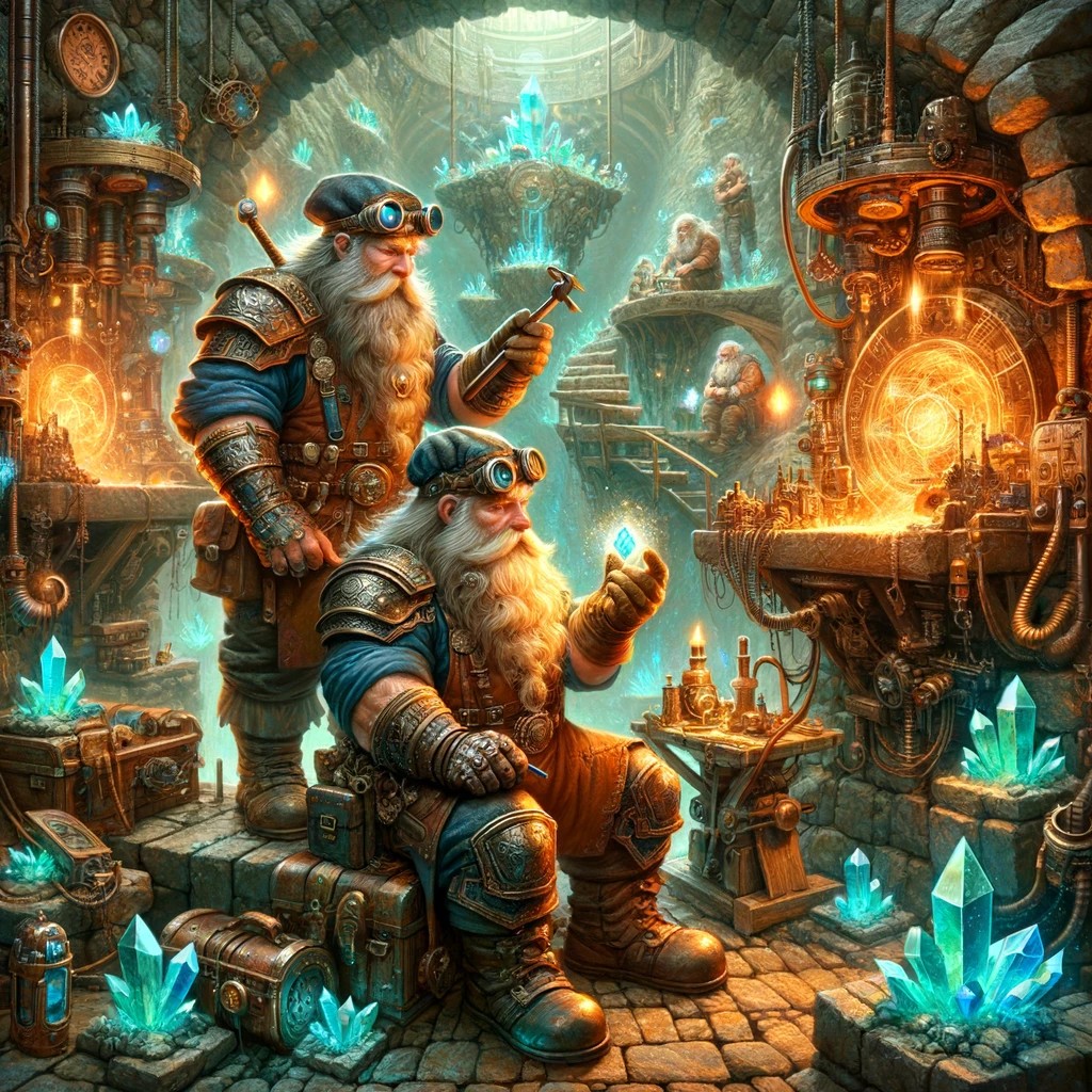 Les Nains possèdent une affinité innée pour la magie des cristaux, qu’ils extraient des profondeurs des Montagnes Éternelles. Leurs pouvoirs magiques se concentrent principalement sur l’artisanat, la forge et l’alchimie. Ils sont capables de créer des objets enchantés et des potions magiques grâce à leur maîtrise des cristaux magiques, mais leur magie est limitée par la rareté des ressources et les propriétés uniques de chaque cristal. De plus, les Nains sont généralement moins habiles dans les arts de la magie pure par rapport aux autres peuples d’Aldoria.